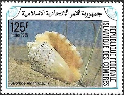 Visibility: public Image owner: none postage 10/23/1985 125fr multi dt=shells (1985) d=Strombus lentilinosum unwmk perf=13.75 Crops No visible images cropped from this one. Measurements Resolution is unknown. Source Source name: Colnect File URL: http://i.colnect.net/b/2553/367/Silver-Conch-Strombus-lentiginosus.jpg Uploaded April 17, 2015, 3:49 am by Stan Shebs |