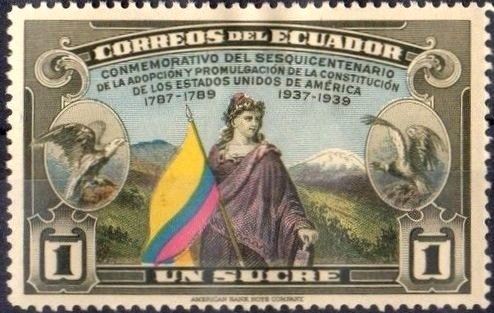 Visibility: public Image owner: none postage 2/22/1938 1s olblk&multi issue=US Constitution 150th d=Liberty carrying flag of Ecuador unwmk perf=12 Crops No visible images cropped from this one. Measurements Resolution is unknown. Source Source name: Colnect File URL: http://i.colnect.net/images/b/2519/340/Liberty-carrying-flag-of-Ecuador.jpg Uploaded May 11, 2015, 3:32 am by Stan Shebs |