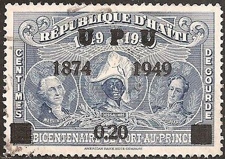 Visibility: public Image owner: none postage 10/4/1950 20c bl issue=UPU 75th d=Washington & Dessalines & Bolivar oc=blk on=type=postal tax-1949-5c-bl unwmk Crops No visible images cropped from this one. Measurements Resolution is unknown. Source Source name: Colnect File URL: http://i.colnect.net/b/2564/054/75th-Anniversary-of-the-UPU-Universal-Postal-Union.jpg Uploaded May 26, 2015, 12:33 pm by Stan Shebs |