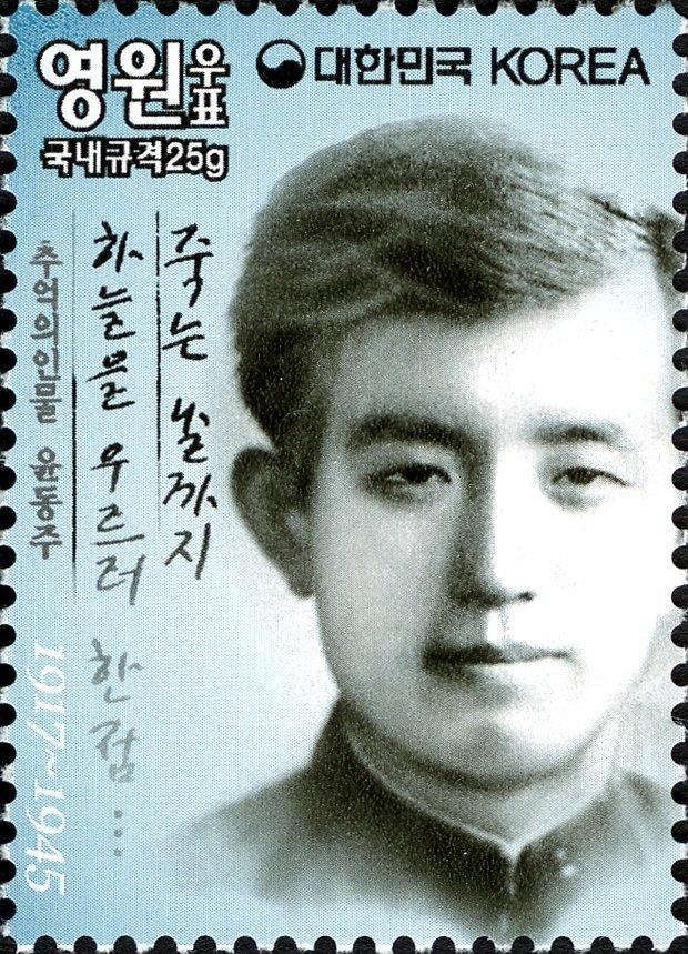Visibility: public Image owner: none postage 4/9/2014 1234 multi issue=Memorable Figures (2nd) d=Yun Dongju unwmk Crops No visible images cropped from this one. Measurements Resolution is unknown. Source Source name: Colnect File URL: http://i.colnect.net/b/2567/627/Yun-Dongju.jpg Uploaded May 26, 2015, 6:52 pm by Stan Shebs |