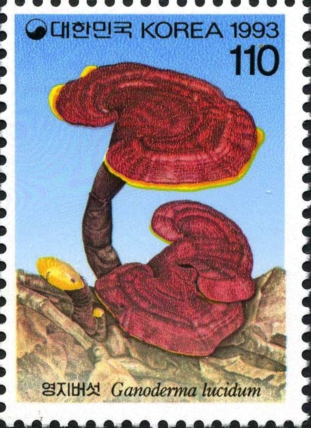 Visibility: public Image owner: none postage 7/26/1993 110w multi dt=Fungi (1993 Korea) d=Ganoderma lucidum (1993 Korea) unwmk Crops No visible images cropped from this one. Measurements Resolution is unknown. Source Source name: Colnect File URL: http://i.colnect.net/b/2680/857/Ganoderma-lucidum.jpg Uploaded May 26, 2015, 8:11 pm by Stan Shebs |