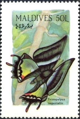 Visibility: public Image owner: none postage 12/16/1987 50l multi dt=butterflies (1987 Maldive Islands) d=Teinopalpus imperialis (1987) unwmk perf=15 Crops No visible images cropped from this one. Measurements Resolution is unknown. Source Source name: Colnect File URL: http://i.colnect.net/images/b/2371/650/Kaiser-i-Hind-Teinopalpus-imperialis.jpg Uploaded May 26, 2015, 10:00 pm by Stan Shebs |