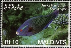 Visibility: public Image owner: none postage 2/8/2007 10.00r multi issue=Fishes of the Maldives 2007 dt=fishes of the Maldives d=Dusky Parrotfish Scarus niger unwmk perf=14 Crops No visible images cropped from this one. Measurements Resolution is unknown. Source Source name: Colnect File URL: http://i.colnect.net/images/b/2362/917/Dusky-Parrotfish-Scarus-niger.jpg Uploaded May 26, 2015, 10:14 pm by Stan Shebs |