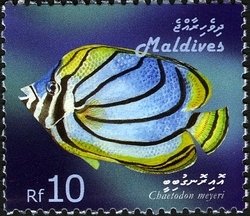 Visibility: public Image owner: none postage 11/1/2006 10r multi dt=fishes (2006 Maldive Islands) d=Scrawled Butterflyfish Chaetodon meyeri unwmk perf=12 Crops No visible images cropped from this one. Measurements Resolution is unknown. Source Source name: Colnect File URL: http://i.colnect.net/images/b/2362/901/Scrawled-Butterflyfish-Chaetodon-meyeri.jpg Uploaded May 26, 2015, 10:15 pm by Stan Shebs |