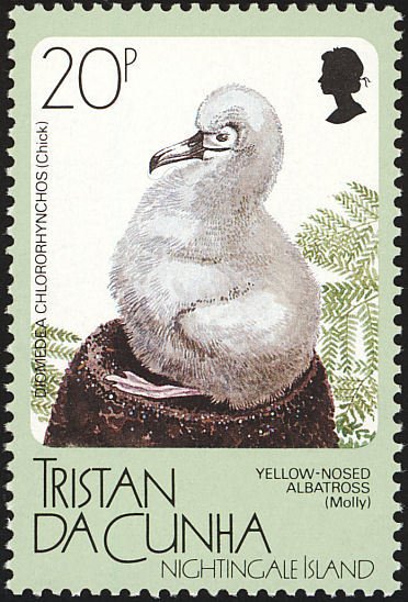 Visibility: public Image owner: none postage 3/21/1988 20p multi dt=animals of Nightingale Island d=Diomedea chlororhynchos wmk=crown & script CA spiral Crops No visible images cropped from this one. Measurements Resolution is unknown. Source Source name: Colnect File URL: http://i.colnect.net/b/2606/236/Atlantic-Yellow-nosed-Albatross-Diomedea-chlororhynchos.jpg Uploaded May 31, 2015, 12:03 pm by Stan Shebs |
