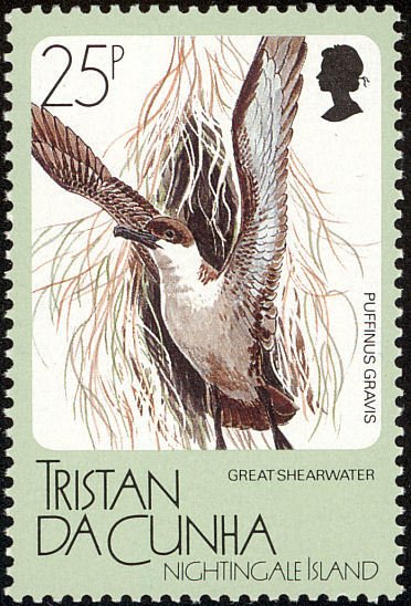 Visibility: public Image owner: none postage 3/21/1988 25p multi dt=animals of Nightingale Island d=Ardenna gravis wmk=crown & script CA spiral Crops No visible images cropped from this one. Measurements Resolution is unknown. Source Source name: Colnect File URL: http://i.colnect.net/b/2606/237/Great-Shearwater-Ardenna-gravis.jpg Uploaded May 31, 2015, 12:03 pm by Stan Shebs |