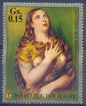 Visibility: public Image owner: none postage 3/29/1971 0.15g multi issue=Paintings of Italian Masters and Paintings of the National Museum of Asuncion d=by Titian unwmk perf=14 Crops No visible images cropped from this one. Measurements Resolution is unknown. Source Source name: Colnect File URL: http://i.colnect.net/b/2309/043/Titian.jpg Uploaded June 9, 2015, 7:48 pm by Stan Shebs |
