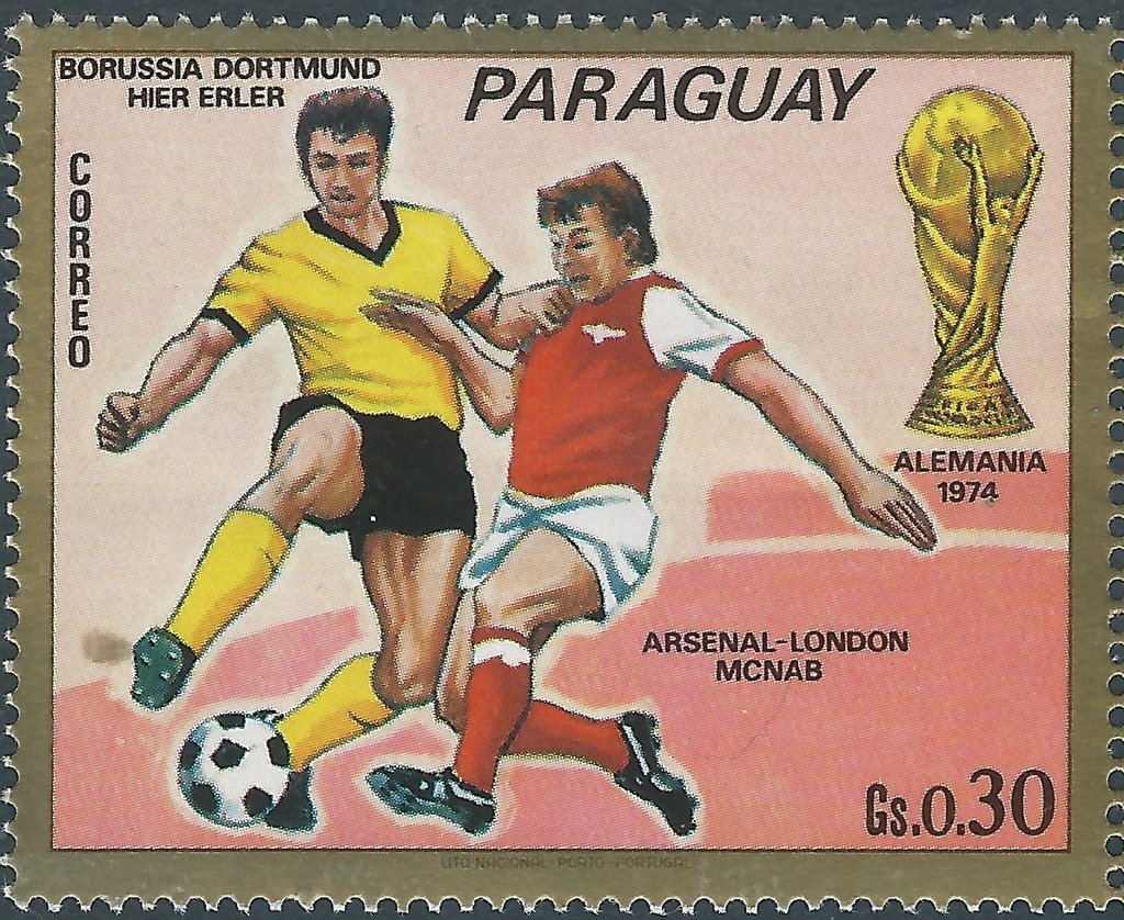Visibility: public Image owner: none postage 10/8/1973 0.30g multi issue=World Cup 1974 in 1973 b unwmk perf=14 Crops No visible images cropped from this one. Measurements Resolution is unknown. Source Source name: Colnect File URL: http://i.colnect.net/b/2490/308/Erler-Borussia-Dortmund-and-McNab-FC-Arsenal.jpg Uploaded June 9, 2015, 8:33 pm by Stan Shebs |