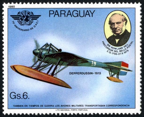 Visibility: public Image owner: none postage 4/8/1980 6g multi issue=Rowland Hill death 100th unwmk perf=14 Crops No visible images cropped from this one. Measurements Resolution is unknown. Source Source name: Colnect File URL: http://i.colnect.net/b/2328/761/Deperdussin-Paraguay-1913.jpg Uploaded June 9, 2015, 9:15 pm by Stan Shebs |