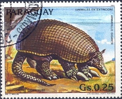 Visibility: public Image owner: none postage 6/16/1984 0.25g multi dt=Endangered Animals (1984 Paraguay) d=Priodontes giganteus (1984) unwmk Crops No visible images cropped from this one. Measurements Resolution is unknown. Source Source name: Colnect File URL: http://i.colnect.net/b/2321/532/Giant-Armadillo-Priodontes-giganteus.jpg Uploaded June 9, 2015, 10:05 pm by Stan Shebs |