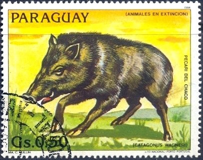 Visibility: public Image owner: none postage 6/16/1984 0.50g multi dt=Endangered Animals (1984 Paraguay) d=Tayassu tajacu (1984) unwmk Crops No visible images cropped from this one. Measurements Resolution is unknown. Source Source name: Colnect File URL: http://i.colnect.net/b/2321/533/Collared-Peccary-Tayassu-tajacu.jpg Uploaded June 9, 2015, 10:05 pm by Stan Shebs |