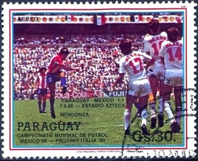 Visibility: public Image owner: none airmail 2/19/1987 30g multi issue=World Cup 1986 c unwmk Crops No visible images cropped from this one. Measurements Resolution is unknown. Source Source name: Colnect File URL: http://i.colnect.net/b/2327/057/Scenes-from-the-games-of-the-Paraguayan-national-team.jpg Uploaded June 9, 2015, 10:30 pm by Stan Shebs |