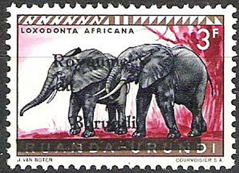 Visibility: public Image owner: none postage 7/1/1962 3fr multi issue=1962b d=elephants (1959) ovpt=Royaume//du//Burundi//bar oc=blk on=issuer=RuandaUrundi-issue=animals-3fr unwmk Crops No visible images cropped from this one. Measurements Resolution is unknown. Source Source name: Colnect File URL: http://i.colnect.net/b/2314/986/African-Elephant-Loxodonta-africana.jpg Uploaded June 23, 2015, 5:36 pm by Stan Shebs |