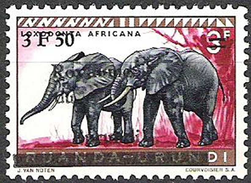 Visibility: public Image owner: none postage 7/1/1962 3.50fr issue=1962b ovpt=Royaume//du//Burundi//bar oc=blk on=issuer=RuandaUrundi-issue=animals-3.50fr Crops No visible images cropped from this one. Measurements Resolution is unknown. Source Source name: Colnect File URL: http://i.colnect.net/b/2314/987/African-Elephant-Loxodonta-africana.jpg Uploaded June 23, 2015, 5:36 pm by Stan Shebs |