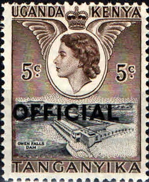 Visibility: public Image owner: none official 7/1/1959 5c dkbrn&blk issue=1959 official dt=Elizabeth II pictorials (1954) d=Queen Elizabeth II & Owen Falls Dam ovpt=OFFICIAL oc=blk on=1954-5c wmk=mult crown & script CA Crops No visible images cropped from this one. Measurements Resolution is unknown. Source Source name: Colnect File URL: http://i.colnect.net/b/2316/104/Owen-Falls-Dam.jpg Uploaded June 28, 2015, 5:10 pm by Stan Shebs |