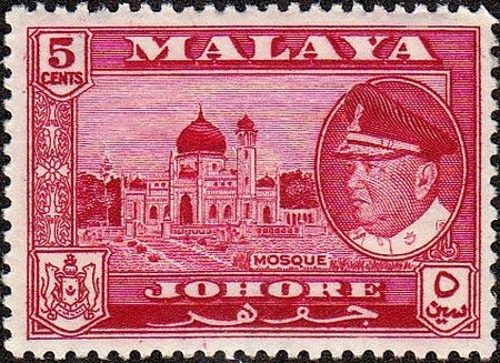 Visibility: public Image owner: none postage 6/10/1960 5c carlake issue=1960 d=Alwi Mosque & Sultan Ismail of Johor wmk=mult crown & script CA Crops No visible images cropped from this one. Measurements Resolution is unknown. Source Source name: Colnect File URL: http://i.colnect.net/b/2574/593/Sultan-Ismael-and-Mosque.jpg Uploaded June 28, 2015, 6:07 pm by Stan Shebs |
