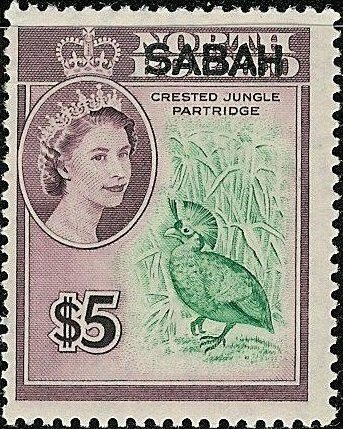 Visibility: public Image owner: none postage 7/1/1964 $5 lil&grn issue=Sabah d=Crested Jungle Partridge & Queen Elizabeth II ovpt=SABAH oc=blk on=issuer=North Borneo-1961-$5 wmk=St Edwards crown & CA Crops No visible images cropped from this one. Measurements Resolution is unknown. Source Source name: Colnect File URL: http://i.colnect.net/b/2571/421/Crested-Partridge-Rollulus-roulroul.jpg Uploaded June 29, 2015, 2:04 pm by Stan Shebs |
