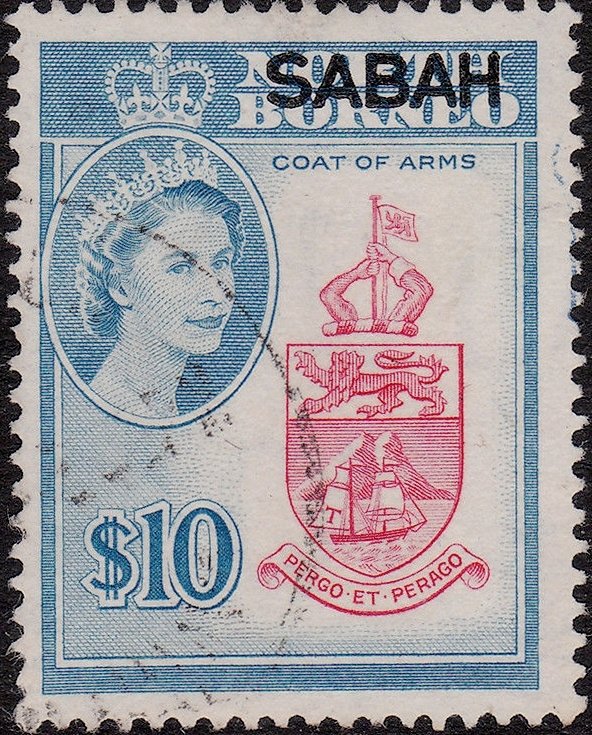 Visibility: public Image owner: none postage 7/1/1964 $10 bl&car issue=Sabah d=arms of North Borneo & Queen Elizabeth II ovpt=SABAH oc=blk on=issuer=North Borneo-1961-$10 wmk=St Edwards crown & CA Crops No visible images cropped from this one. Measurements Resolution is unknown. Source Source name: Colnect File URL: http://i.colnect.net/b/2571/302/Arms-of-North-Borneo.jpg Uploaded June 29, 2015, 2:04 pm by Stan Shebs |