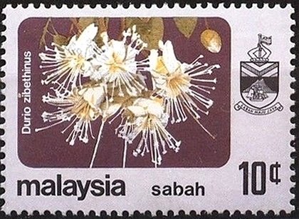 Visibility: public Image owner: none postage 4/30/1979 10c multi dt=flowers (1979 Malaysia common) d=Durio zibethinus (1979) wmk=POS in octagon mult Crops No visible images cropped from this one. Measurements Resolution is unknown. Source Source name: Colnect File URL: http://i.colnect.net/b/2284/968/Flowers-Durio-zibethinus.jpg Uploaded June 29, 2015, 2:04 pm by Stan Shebs |