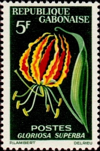 Visibility: public Image owner: none postage 11/16/1964 5fr dt=flowers (1964 Gabon) d=Gloriosa superba (1964) unwmk perf=12.5x12 Crops No visible images cropped from this one. Measurements Resolution is unknown. Source Source name: Colnect File URL: http://i.colnect.net/images/b/2521/575/Gloriosa-superba.jpg Uploaded July 1, 2015, 6:17 pm by Stan Shebs |