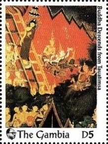 Visibility: public Image owner: none postage 9/27/1993 5d multi issue=BANGKOK '93 unwmk perf=13.75 Crops No visible images cropped from this one. Measurements Resolution is unknown. Source Source name: Colnect File URL: http://i.colnect.net/b/2383/357/Buddha-Descends.jpg Uploaded July 2, 2015, 3:08 am by Stan Shebs |