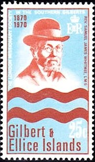 Visibility: public Image owner: none postage 9/1/1970 25c multi issue=100th Anniversary of Landing in Gilbert Islands by London Missionary Society d=Rev Samuel James Whitmore wmk=St Edwards crown & CA Crops No visible images cropped from this one. Measurements Resolution is unknown. Source Source name: Colnect File URL: http://i.colnect.net/b/2244/487/Rev-Samuel-James-Whitmore.jpg Uploaded July 11, 2015, 8:51 pm by Stan Shebs |