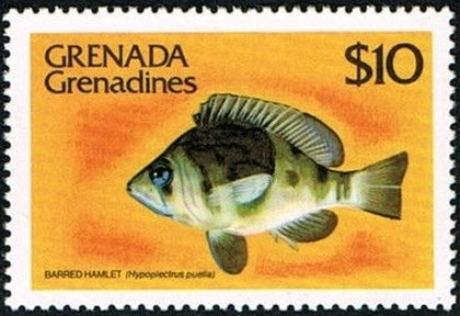 Visibility: public Image owner: none postage 8/6/1980 $10 multi issue=1980 dt=fishes (1980 Grenada Grenadines) d=Hypoplectrus puella perf=14 Crops No visible images cropped from this one. Measurements Resolution is unknown. Source Source name: Colnect File URL: http://i.colnect.net/b/2368/807/Barred-Hamlet-Hypoplectrus-puella.jpg Uploaded July 13, 2015, 1:17 pm by Stan Shebs |