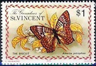 Visibility: public Image owner: none postage 5/15/1975 $1 multi dt=butterflies (1975 St. Vincent Grenadines) d=The Biscuit wmk=crown & CA spiral unissued Crops No visible images cropped from this one. Measurements Resolution is unknown. Source Source name: Colnect File URL: http://i.colnect.net/b/2549/534/White-Peacock-Anartia-jatrophae.jpg Uploaded July 14, 2015, 4:01 pm by Stan Shebs |
