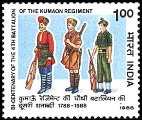 Visibility: public Image owner: none postage 2/19/1988 1r multi issue=200th Anniversary of the Fourth Battalion of the Kumaon Regiment wmk=Asokan capital Crops No visible images cropped from this one. Measurements Resolution is unknown. Source Source name: Colnect File URL: http://i.colnect.net/b/2526/211/4th-Battalion-of-the-Kumaon-Regiment.jpg Uploaded July 14, 2015, 11:11 pm by Stan Shebs |