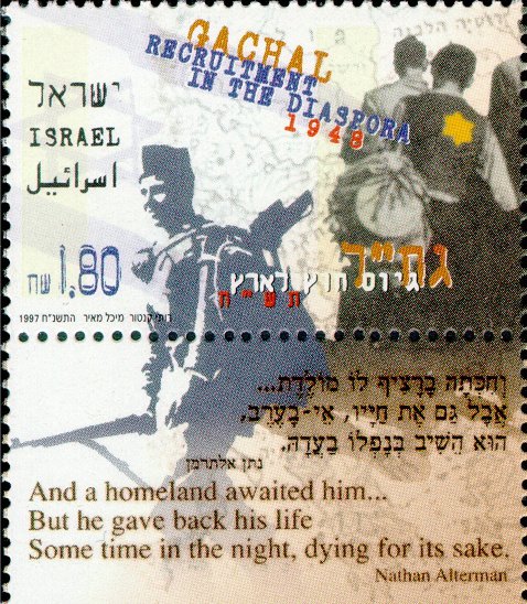 Visibility: public Image owner: none postage 1.80nis multi issue=50th Anniversary of Arrival in Israel of Machal (Overseas Volunteers) and Gachal (Overseas Recruits) unwmk Crops No visible images cropped from this one. Measurements Resolution is unknown. Source Source name: Colnect File URL: http://i.colnect.net/b/2636/359/Gachal---Recruitment-in-the-diaspora.jpg Uploaded July 15, 2015, 2:43 pm by Stan Shebs |