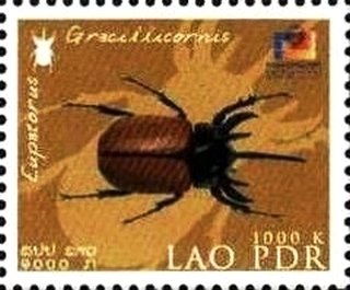 Visibility: public Image owner: none postage 8/1/2002 1000k multi issue=PhilaKorea 2002 dt=beetles (2002 Laos) d=Eupatorus gracillicornis unwmk Crops No visible images cropped from this one. Measurements Resolution is unknown. Source Source name: Colnect File URL: http://i.colnect.net/b/2541/503/Five-horned-Rhinoceros-Beetle-Eupatorus-gracillicornis.jpg Uploaded July 17, 2015, 3:59 pm by Stan Shebs |