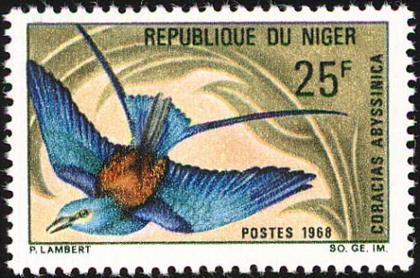 Visibility: public Image owner: none postage 11/15/1968 25fr multi dt=birds (1968 Niger) d=Coracias abyssinica (1968) unwmk Crops No visible images cropped from this one. Measurements Resolution is unknown. Source Source name: Colnect File URL: http://i.colnect.net/b/2605/798/Abyssinian-Roller Coracias-abyssinica.jpg Uploaded July 21, 2015, 9:45 pm by Stan Shebs |