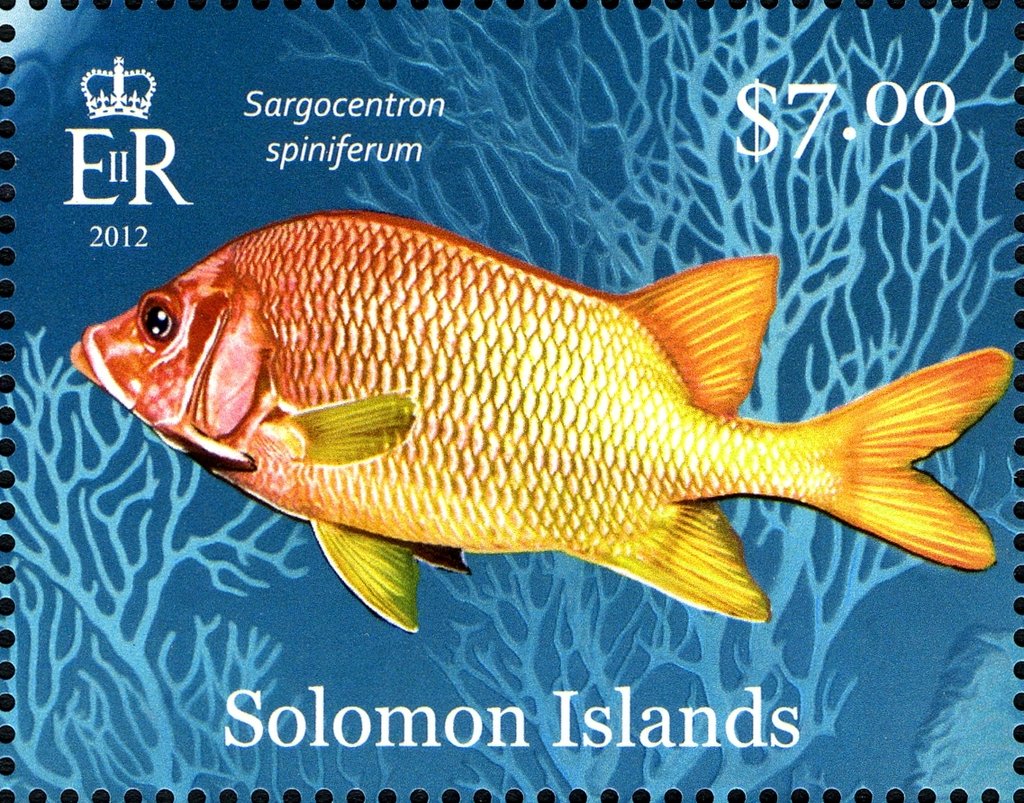 Visibility: public Image owner: none postage 2/15/2013 $7.00 multi issue=Solomon Islands Marine Life d=Sargocentron spiniferum (2013) unwmk perf=13.5 Crops No visible images cropped from this one. Measurements Resolution is unknown. Source Source name: Colnect File URL: http://i.colnect.net/b/2576/834/Spiny-Squirrelfish-Sargocentron-spiniferum.jpg Uploaded July 22, 2015, 9:54 pm by Stan Shebs |