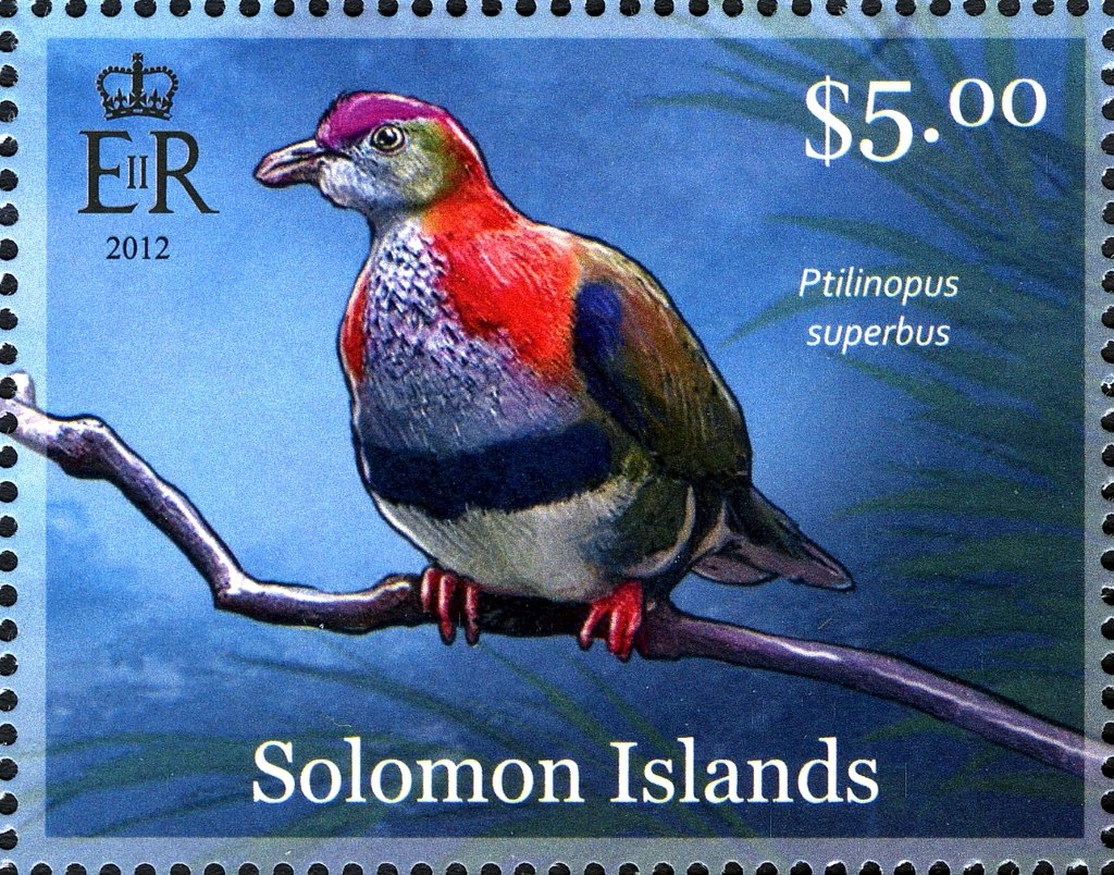 Visibility: public Image owner: none postage 2/15/2013 $5.00 multi issue=Birds of Solomon Islands 2013 d=Ptilinopus superbus unwmk perf=13.5 Crops No visible images cropped from this one. Measurements Resolution is unknown. Source Source name: Colnect File URL: http://i.colnect.net/b/2576/857/Superb-Fruit-Dove Ptilinopus-superbus.jpg Uploaded July 22, 2015, 9:55 pm by Stan Shebs |