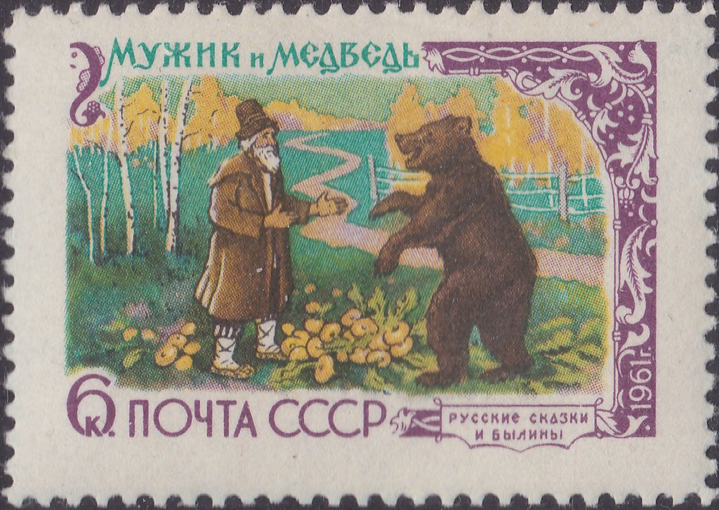 Visibility: public Image owner: none postage 5/15/1961 6k multi dt=fairy tales (1961 Russia) d="The Muzhik and the Bear" unwmk perf=12 Crops No visible images cropped from this one. Measurements Resolution is unknown. Source Source name: Colnect File URL: http://i.colnect.net/b/1893/675/-The-Farmer-and-the-Bear-.jpg Uploaded July 23, 2015, 3:55 pm by Stan Shebs |