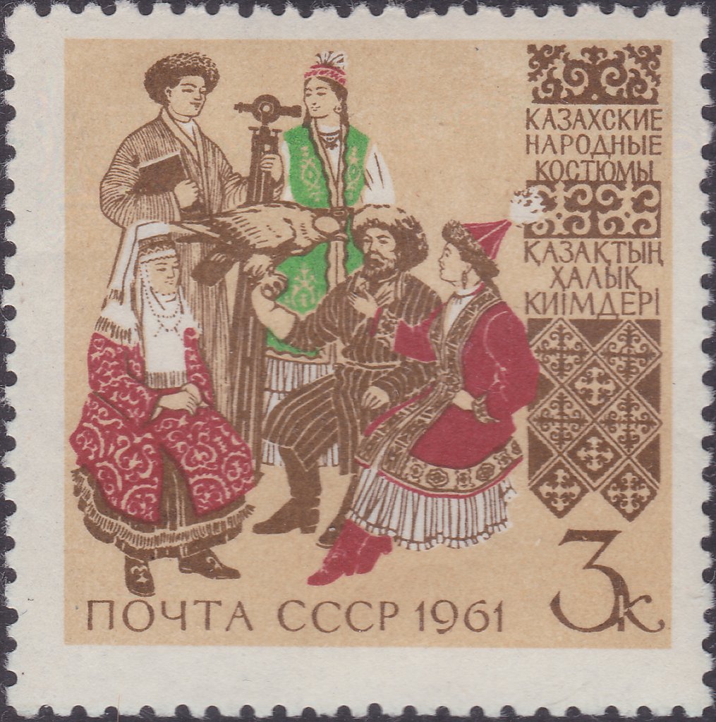 Visibility: public Image owner: none postage 1/2/1961 3k issue=costumes 1961 dt=regional costumes (1961 Russia) d=Kazakh national costumes unwmk perf=12 Crops No visible images cropped from this one. Measurements Resolution is unknown. Source Source name: Colnect File URL: http://i.colnect.net/b/1895/266/Kazakh-National-Costumes.jpg Uploaded July 23, 2015, 3:57 pm by Stan Shebs |
