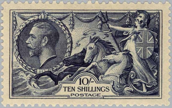 Visibility: public Image owner: none postage 10/1934 10sh ind d=Britannia Rules the Waves (retouched) var=crossed lines wmk=crown & block GvR perf=11x12 Crops No visible images cropped from this one. Measurements Resolution is unknown. Source Source name: Colnect File URL: http://i.colnect.net/b/121/389/King-George-V---Seahorses.jpg Uploaded July 23, 2015, 9:51 pm by Stan Shebs |