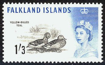 Visibility: public Image owner: none postage 2/10/1960 1sh3p ultra&blk issue=1960 dt=birds (1960 Falkland Islands) d=yellow-billed teal & Queen Elizabeth II wmk=St Edwards crown & CA perf=13.5 Crops No visible images cropped from this one. Measurements Resolution is unknown. Source Source name: Colnect File URL: http://i.colnect.net/b/2215/187/Yellow-billed-Teal-Anas-flavirostris-.jpg Uploaded July 29, 2015, 5:05 pm by Stan Shebs |