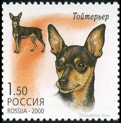 Visibility: public Image owner: none postage 7/20/2000 1.50(r) multi dt=Decorative Dogs d=Toy terrier unwmk perf=11.75 Crops No visible images cropped from this one. Measurements Resolution is unknown. Source Source name: Colnect File URL: http://i.colnect.net/b/2024/517/English-Toy-Terrier-Canis-lupus-familiaris.jpg Uploaded August 12, 2015, 4:23 pm by Stan Shebs |