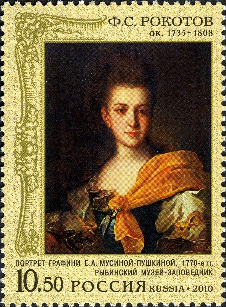 Visibility: public Image owner: none postage 3/19/2010 10.50r multi issue=275th Anniversary of Birth of Feodor Rockotov d=Portrait of Countess E.A. Musina-Pushkina unwmk Crops No visible images cropped from this one. Measurements Resolution is unknown. Source Source name: Colnect File URL: http://i.colnect.net/images/b/2373/608/FSRokotov--quot-Countess-Portrait-EAMusina-Pushkina-quot--1770s.jpg Uploaded August 12, 2015, 4:27 pm by Stan Shebs |