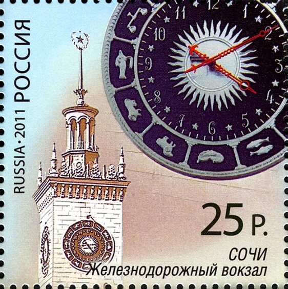Visibility: public Image owner: none postage 5/16/2011 25r multi issue=Monuments of Science and Technology dt=building clocks d=Railway Station, Sochi unwmk perf=12.5 Crops No visible images cropped from this one. Measurements Resolution is unknown. Source Source name: Colnect File URL: http://i.colnect.net/images/b/2292/535/Clock-on-Railway-Station-Sochi.jpg Uploaded August 12, 2015, 4:35 pm by Stan Shebs |