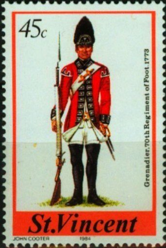 Visibility: public Image owner: none postage 11/12/1984 45c multi dt=Military Uniforms (1984 St. Vincent) d=Grenadier 1773 wmk=St Edwards crown & CA perf=14 Crops No visible images cropped from this one. Measurements Resolution is unknown. Source Source name: Colnect File URL: http://i.colnect.net/images/b/2644/639/Grenadier-1773.jpg Uploaded August 13, 2015, 5:51 pm by Stan Shebs |