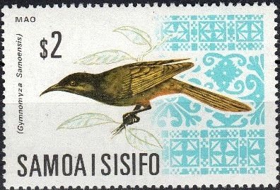 Visibility: public Image owner: none postage 7/10/1967 2t multi issue=decimal d=mao (bird) Gymnomyza samoensis (1967) wmk=kava bowl & WS perf=11 Crops No visible images cropped from this one. Measurements Resolution is unknown. Source Source name: Colnect File URL: http://i.colnect.net/b/2541/456/Mao-Gymnomyza-samoensis.jpg Uploaded August 13, 2015, 7:59 pm by Stan Shebs |