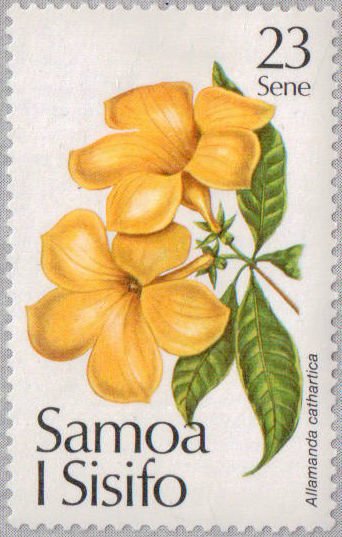 Visibility: public Image owner: none postage 11/2/1981 23s multi issue=Christmas 1981 dt=flowers (1981 Samoa) d=Allamanda cathartica (1981) wmk=kava bowl & WS Crops No visible images cropped from this one. Measurements Resolution is unknown. Source Source name: Colnect File URL: http://i.colnect.net/b/2453/333/Allamanda-cathartica.jpg Uploaded August 13, 2015, 8:08 pm by Stan Shebs |