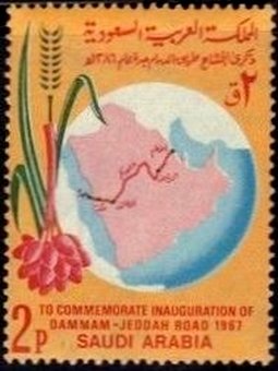 Visibility: public Image owner: none postage 8/1968 2pi ltorg&multi issue=trans-Saudi highway completion d=dates & map with highway wmk=crossed swords & palm tree & inscription Crops No visible images cropped from this one. Measurements Resolution is unknown. Source Source name: Colnect File URL: http://i.colnect.net/b/2706/092/Map.jpg Uploaded August 14, 2015, 5:30 pm by Stan Shebs |
