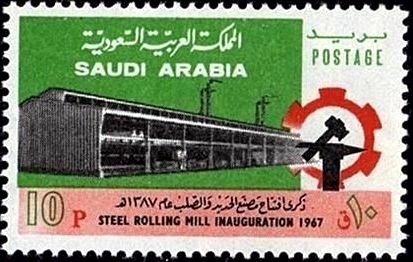 Visibility: public Image owner: none postage 10/26/1970 10pi issue=1st Saudi steel mill d=steel mill in Jedda unwmk Crops No visible images cropped from this one. Measurements Resolution is unknown. Source Source name: Colnect File URL: http://i.colnect.net/b/2708/291/Steel-Rolling-Mill-Jedda.jpg Uploaded August 14, 2015, 5:30 pm by Stan Shebs |