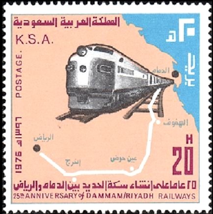 Visibility: public Image owner: none postage 3/23/1977 20h multi issue=25th Anniversary of Dammam-Riyadh Railway unwmk Crops No visible images cropped from this one. Measurements Resolution is unknown. Source Source name: Colnect File URL: http://i.colnect.net/images/b/2657/602/Train.jpg Uploaded August 14, 2015, 5:31 pm by Stan Shebs |