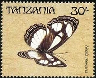 Visibility: public Image owner: none postage 10/17/1988 30sh multi dt=butterflies (1988 Tanzania) d=Neptis melicerta unwmk perf=14.25 Crops No visible images cropped from this one. Measurements Resolution is unknown. Source Source name: Colnect File URL: http://i.colnect.net/b/2598/374/Original-Club-dot-Sailer-Neptis-melicerta.jpg Uploaded August 19, 2015, 4:14 pm by Stan Shebs |