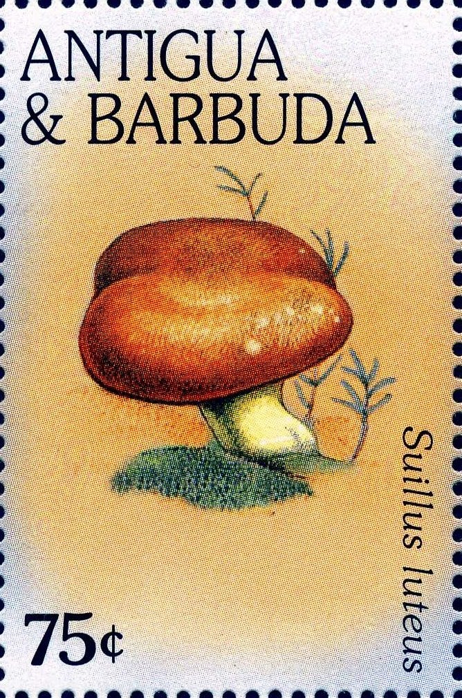Visibility: public Image owner: none postage 4/22/1996 75c multi dt=mushrooms (1996 Antigua) d=Suillus luteus (1996) unwmk perf=14.25 Crops No visible images cropped from this one. Measurements Resolution is unknown. Source Source name: Colnect File URL: http://i.colnect.net/b/2025/696/Suillus-luteus.jpg Uploaded September 1, 2015, 6:45 pm by Stan Shebs |