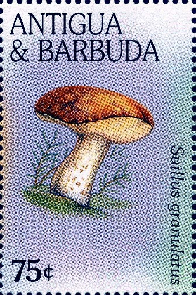 Visibility: public Image owner: none postage 4/22/1996 75c multi dt=mushrooms (1996 Antigua) d=Suillus granulatus (1996) unwmk perf=14.25 Crops No visible images cropped from this one. Measurements Resolution is unknown. Source Source name: Colnect File URL: http://i.colnect.net/b/2025/697/Suillus-granulatus.jpg Uploaded September 1, 2015, 6:45 pm by Stan Shebs |
